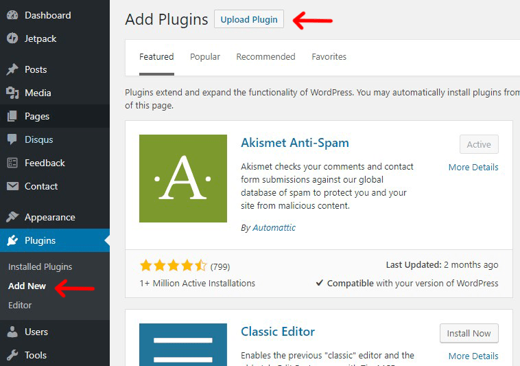 This is the second method that can be applied to install the paid plugins which are not listed in the plugin directory. That’s why WordPress has the Upload method to install such plugins. We will show you how to install WordPress plugins using the upload option in the WordPress Dashboard.